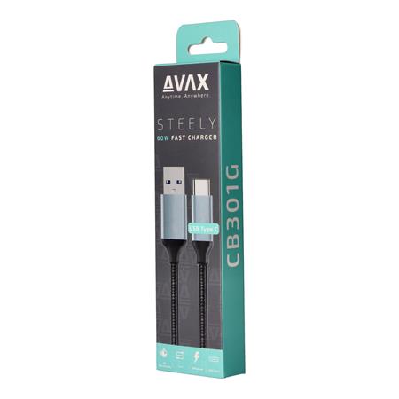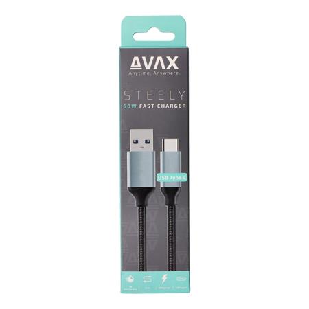 -az AVAX Steely USB-C töltőkábel USB-A és USB-C csatlakozókkal van felszerelve